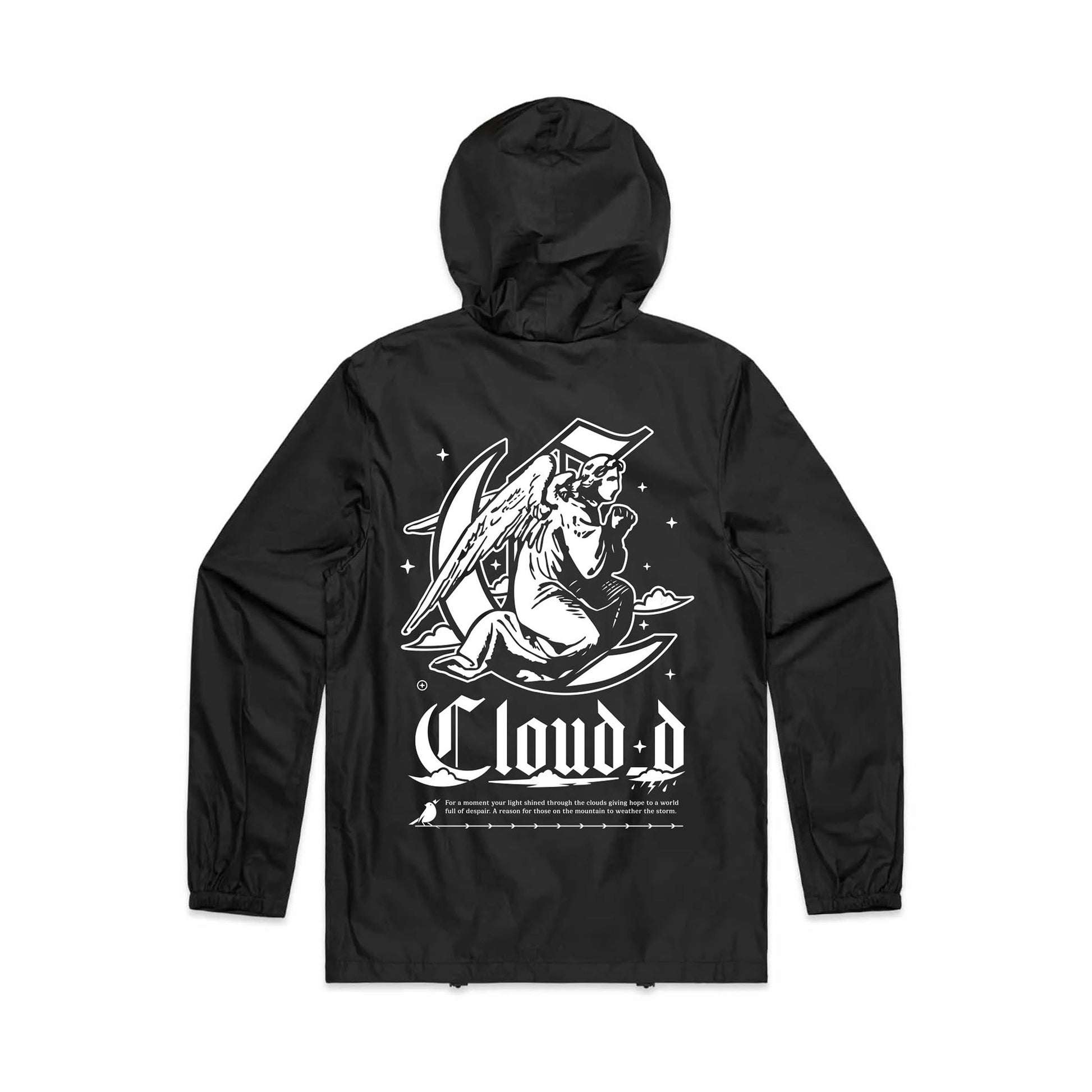 Adjustable elastic drawcords at hem and hood, rubber headphone patch, sealed seams, water resistant, SPF 40, packable